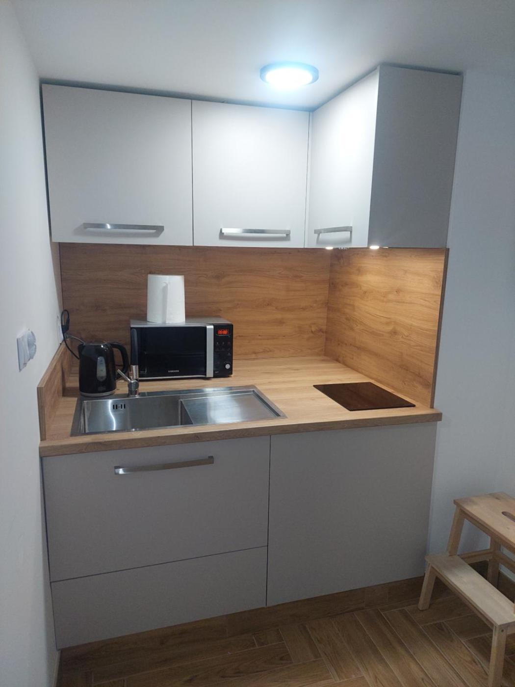 Pokój z 2 łóżkami pojedynczymi i prywatną łazienką poza pokojem. The fully equipped kitchenette has a stovetop, a refrigerator, kitchenware and a microwave. The twin room features an electric kettle and a tiled floor, as well as a private bathroom boasting a walk-in shower. The unit has 2 beds. Pokój z 2 łóżkami pojedynczymi - 2 osobowy. Powierzchnia pokoju ok.: 24 mkw. ;